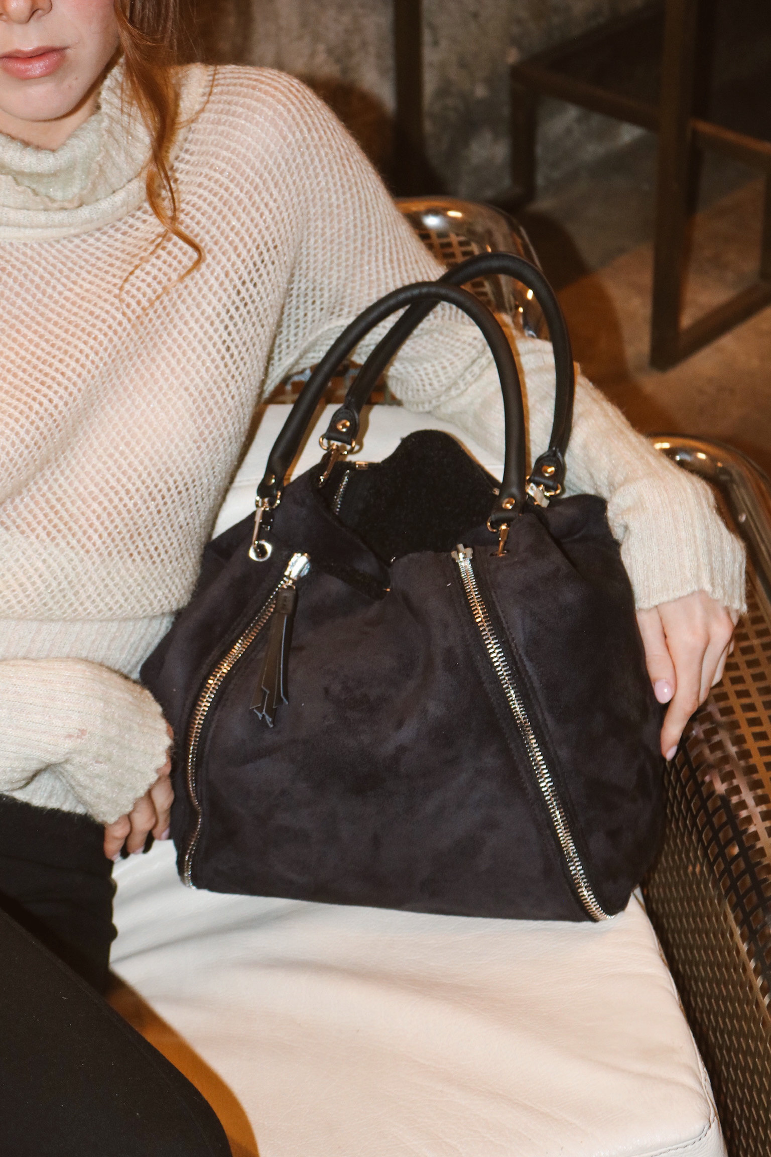 A supersoft tote doubleface with zippers that allow you to transform it in many ways. Fully equipped to be carried with you 24/7 (there's even a security wallet in it!).