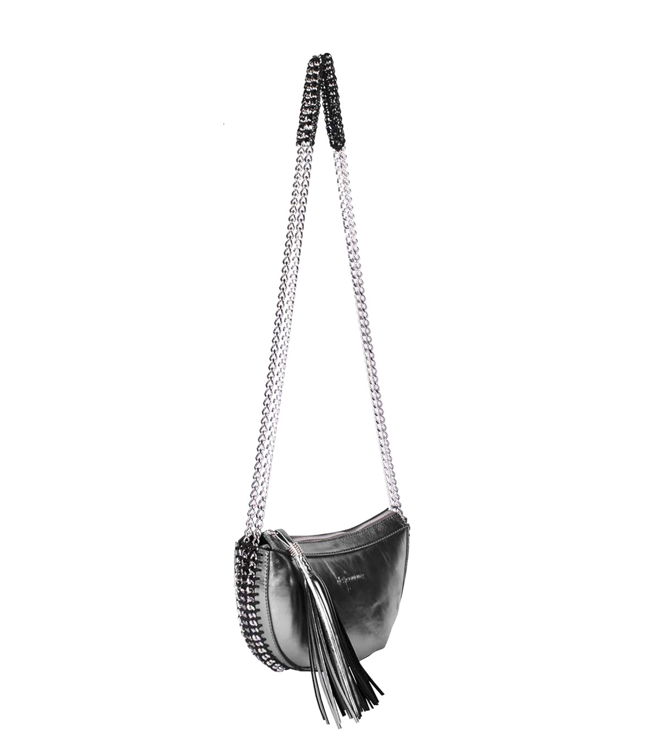 HANDMADE, MADE IN ITALY, CALF LEATHER, CHAINCROCHET, SHOULDERSTRAP, TASSEL.