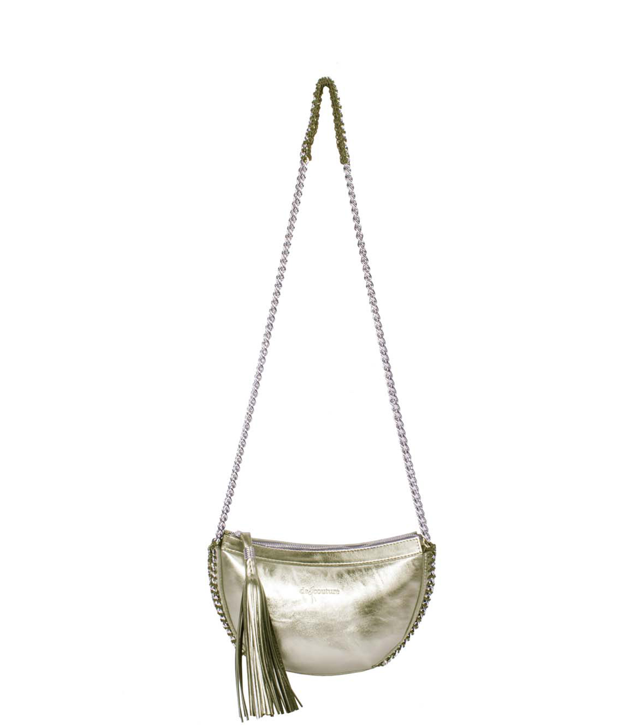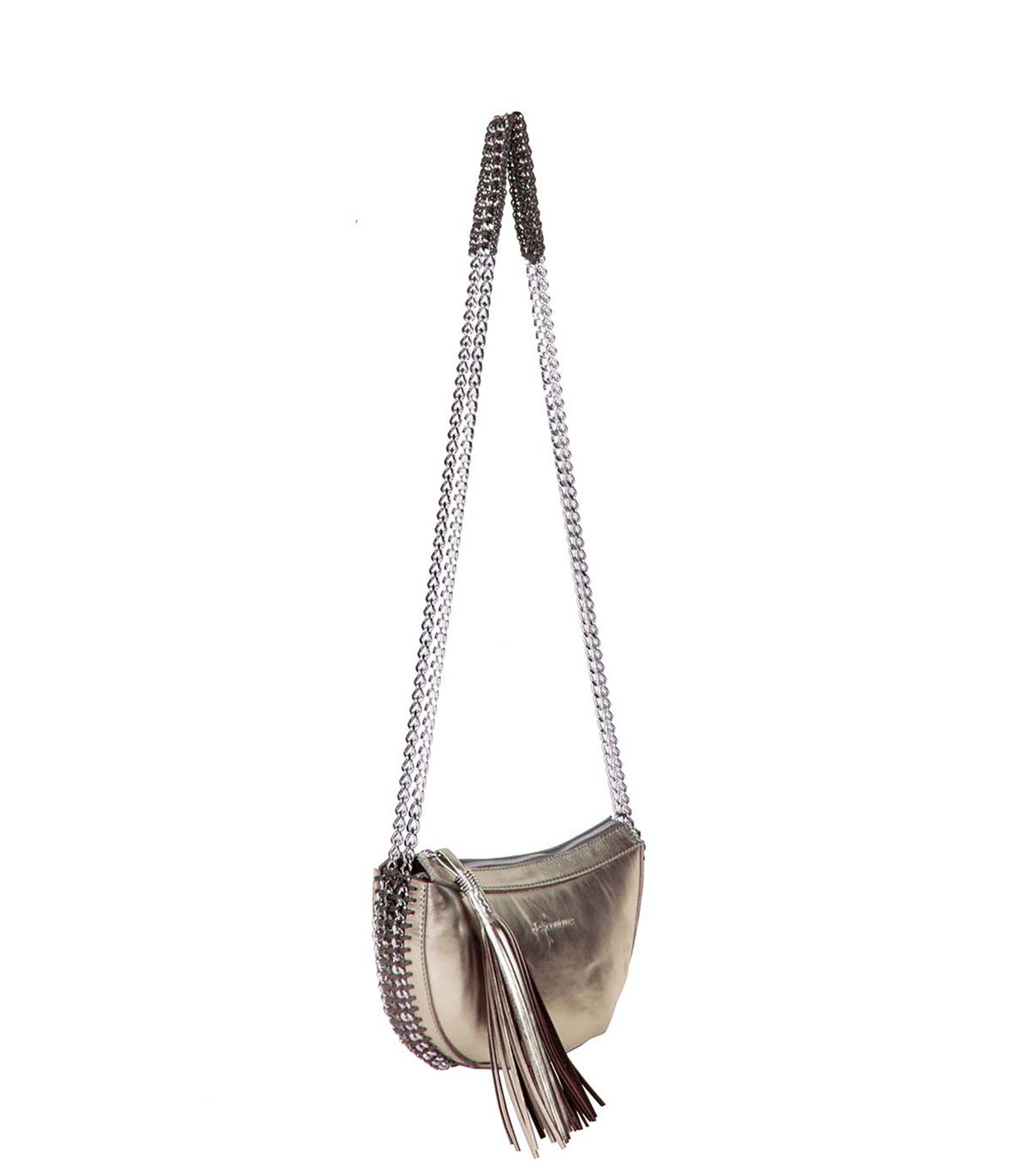 HANDMADE, MADE IN ITALY, CALF LEATHER, CHAINCROCHET, SHOULDERSTRAP, TASSEL.